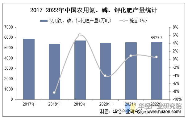近年来,我国的农用氮、磷、钾化肥产量波动幅度较大。据统计,磷、钾化肥产量为5573。3万吨,较上岁尾增加0。5%。