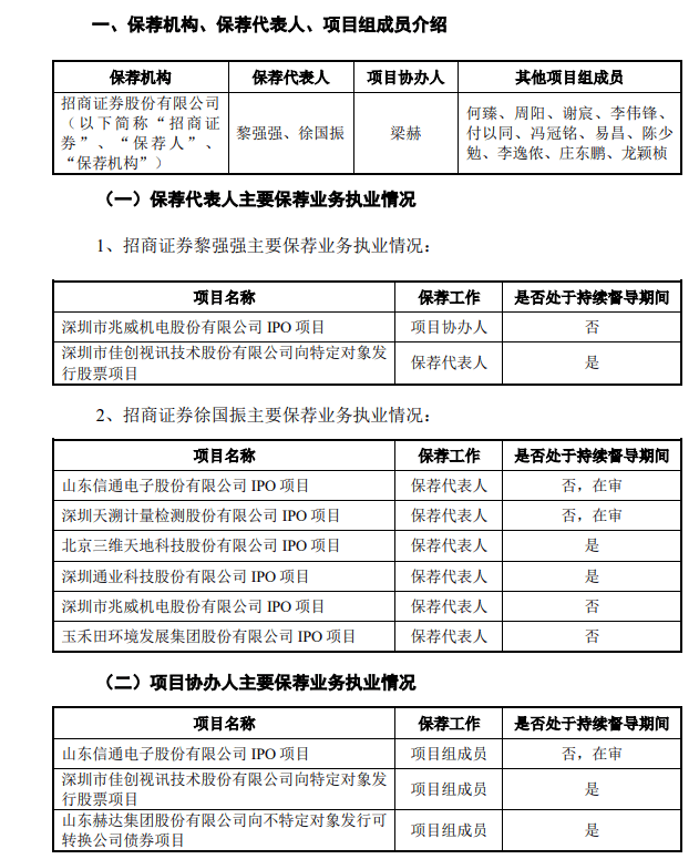 刘劭谦先生:保荐代表人、注册会计师,本科学历,现任中信建投证券投资银行营业办理委员会总监。曾掌管或参取的项目有:浩辰软件科创板IPO、灿勤科技科创板IPO、同享科技精选层挂牌、翰博高新精选层挂牌、创远仪器精选层挂牌、同惠电子精选层挂牌、骏创科技北交所上市、华岭股份北交所上市、特瑞斯北交所上市、欧普泰北交所上市、鼎智科技北交所上市、戈碧迦北交所上市、瑞华手艺北交所上市、通鼎互联可转债、奥瑞金可转债、歌尔股份可转债、风语建可转债、仙琚制药非公开辟行、安诺其非公开辟行、同享科技非公开辟行等项目,做为保荐代表人现正在尽职保举的项目有:无。正在保荐营业执业过程中严酷恪守《证券刊行上市保荐营业办理法子》等相关,执业记实优良。