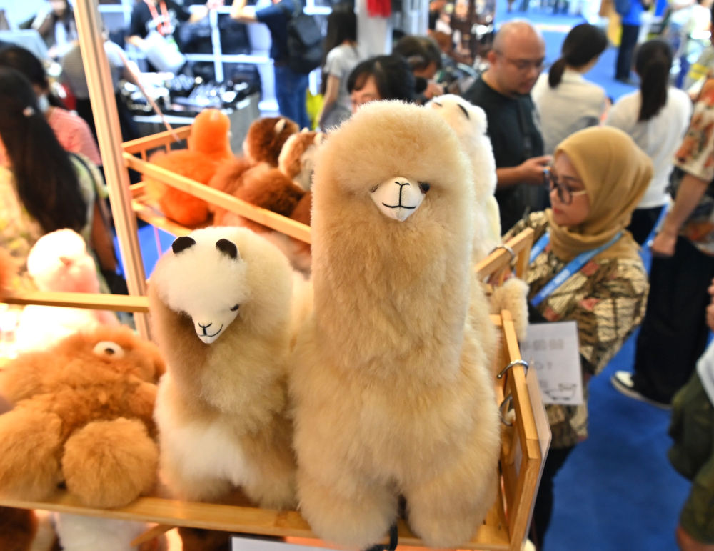 2024年9月28日,不雅众正在中国东盟博览会上挑选秘鲁羊驼毛公仔。(记者 周华 摄)■对欧盟、美国等保守市场也连结增势。不竭拉紧了中欧好处配合体的纽带,2024年双边商业增加1。6%,此中对法国、西班牙、匈牙利别离增加2%、4。5%、12。9%。同期,中美商业增加4。9%,取我国商业全体增速根基持平,我们从美国进口农产物、能源产物、药品、飞机,对美国出口服拆、消费电子、家用电器等,实现了互利共赢。