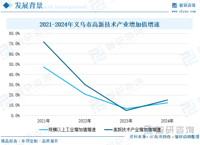 面临错综复杂的经济形势和各类风险挑和,义乌笃定不移推进“贸工联动”计谋,聚焦工业新旧动能转换和高质量成长,加速财产布局优化升级,强化立异驱动,持续优化营商,工业经济呈现稳中向好、优中做强、快中提质优良态势。2024年,义乌市完陈规模以上工业添加值298。1亿元,比上年增加12。4%。高手艺财产(制制业)、高新手艺财产添加值别离比上年增加46。9%和15。1%,别离高于全市规上工业添加值增速34。5个和2。7个百分点。