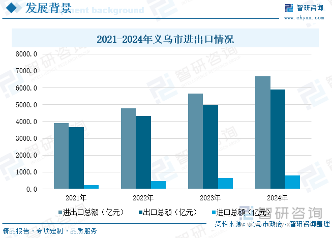 义乌是我国主要的商业窗口,被结合国、世界银行等权势巨子机构称为“全球最大的小商品批发市场”。2024年,义乌市实现进出口总额6689。3亿元,比上年增加18。2%。此中,出口总额5889。6亿元,增加17。7%;进口总额799。7亿元,增加22。2%,进出口、出口和进口值占全省份额别离为12。7%、15。1%和5。9%,占比别离提拔1。1个、1。1个和1。0个百分点。