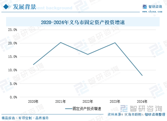 投资方面,2024年,义乌市固定资产投资比上年增加8。0%,别离高于浙江省(0。4%)和金华市(5。3%)7。6个百分点和2。7个百分点。沉点范畴投资由负转正,制制业投资增加0。2%,较前三季度(-9。7%)提高9。9个百分点;高新手艺财产投资增加5。0%,较前三季度(-3。3%)提高8。3个百分点。2024年期间,义乌市招引严沉财产项目70个、总投资830亿元,此中百亿项目3个、50亿元以上6个、10亿元以上22个。
