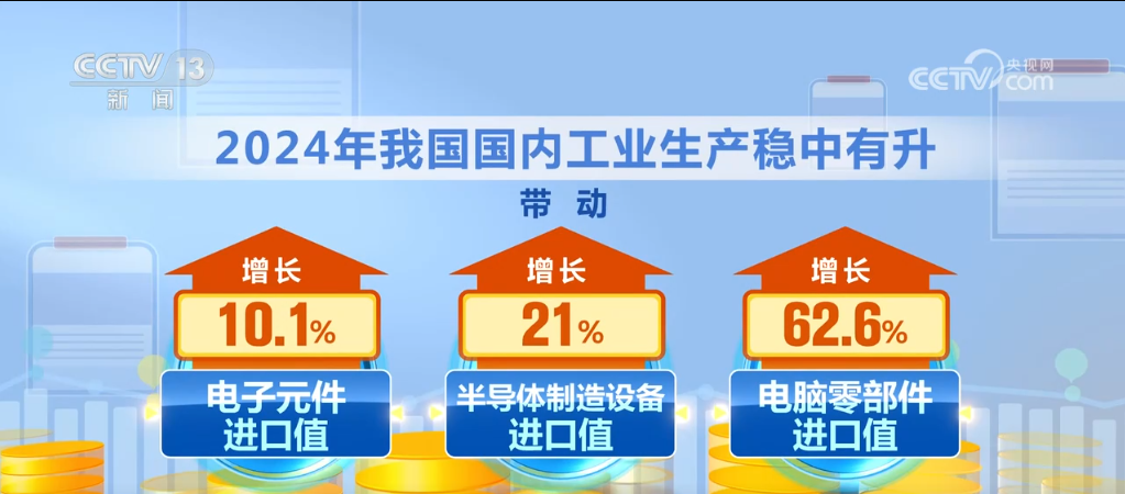 2024年,我国进口规模不竭扩大,不只满脚了国内出产需要,也丰硕了消费选择。客岁,我国国内工业出产稳中有升,带动电子元件、半导体系体例制设备、电脑零部件进口值别离增加10。1%、21%、62。6%;铁矿砂、天然气、煤等大商品进口量别离添加4。9%、9。9%、14。4%。同期,我国很多平易近生消费品的进口需求较为兴旺,如服拆、葡萄酒等进口值别离增加5。6%、8。6%、38。8%。