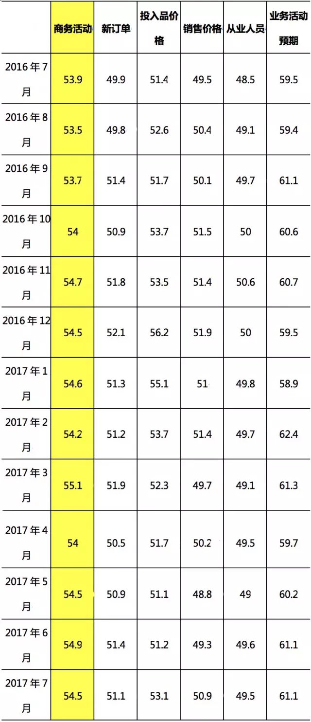 阐发:7月份,非制制业商务勾当指数持续位于54。0%以上的较高景气区间,表白非制制业成长势头优良。办事业延续快速增加态势,邮政快递、电信电视和卫星传输、互联网及软件消息手艺办事等行业商务勾当指数均持续位于60%以上,申明营业总量增加敏捷。能够看出,正在制制业连结不变之时,办事业对经济增加的带动感化更为较着,所可以或许供给的就业岗亭也越来越多。