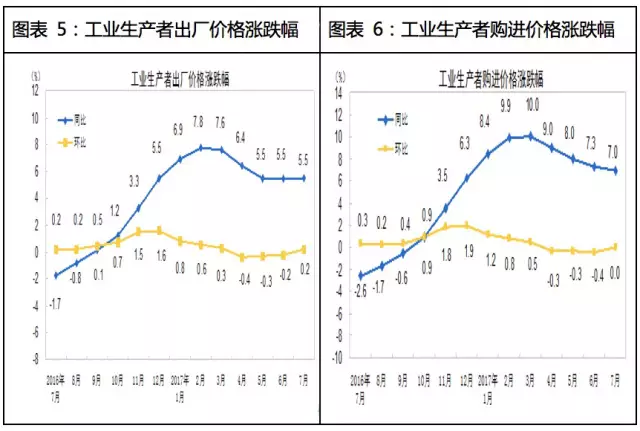 2017年7月份,全国工业出产者出厂价钱同比上涨5。5%,环比上涨0。2%。工业出产者购进价钱同比上涨7。0%,环比持平。