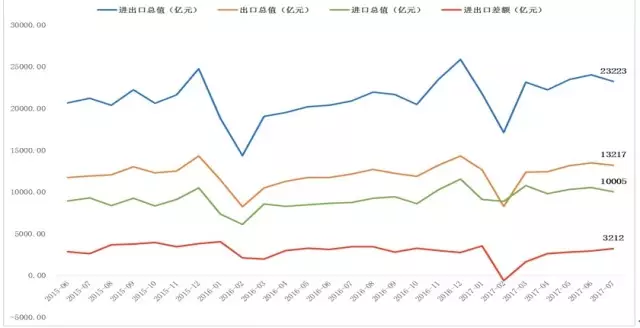 海关总署数据显示,按人平易近币计,7月份,进出口总额23223亿元,同比增加12。7%。此中,出口13217亿元,增加11。2%;进口10005亿元,增加14。7%。进出口相抵,商业顺差3212亿元。